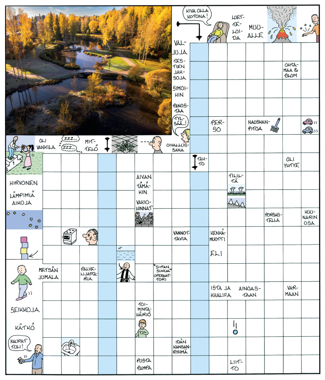 You can fill in the crossword for fun, but you can also enter a competition and win cinema tickets for yourself and a friend. Fill in the crossword, find the keywords on the blue background and send the correct answer with your address and name by email to some@vantaa.fi.