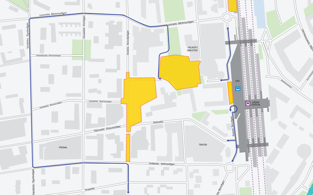 Tikkurila Station and the Dixi shopping centre will remain open as normal throughout the construction period.