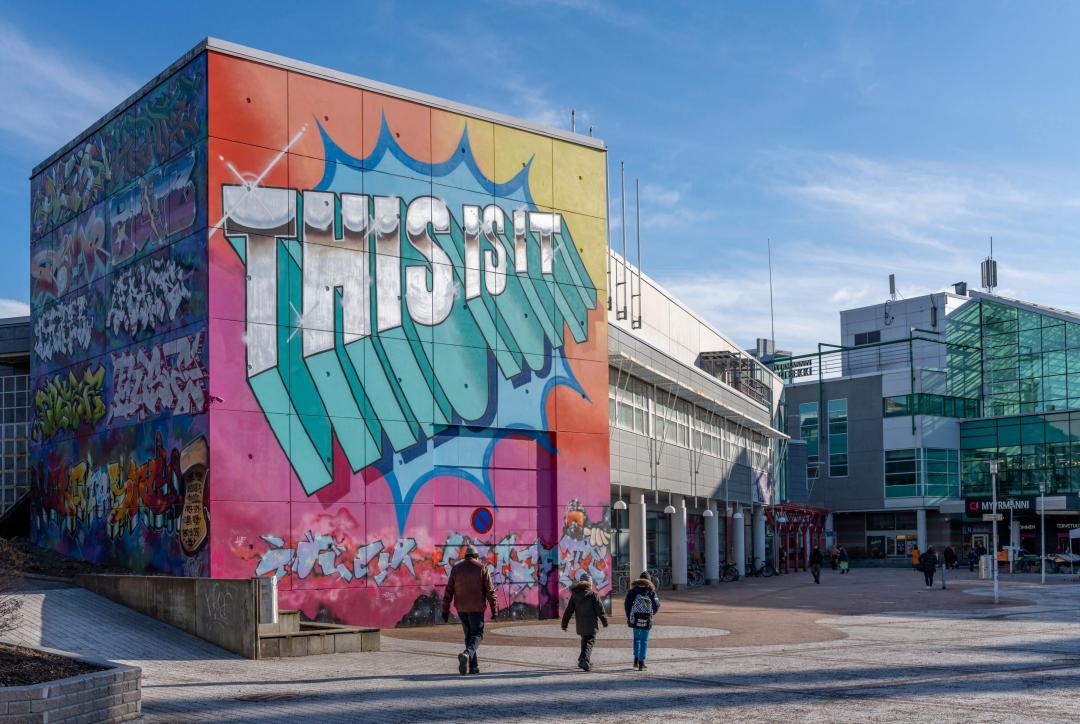Tunnettu seinämaalaus kotiutui Tikkurilaan syksyllä 2023. Joko otit selfien muraalilla?