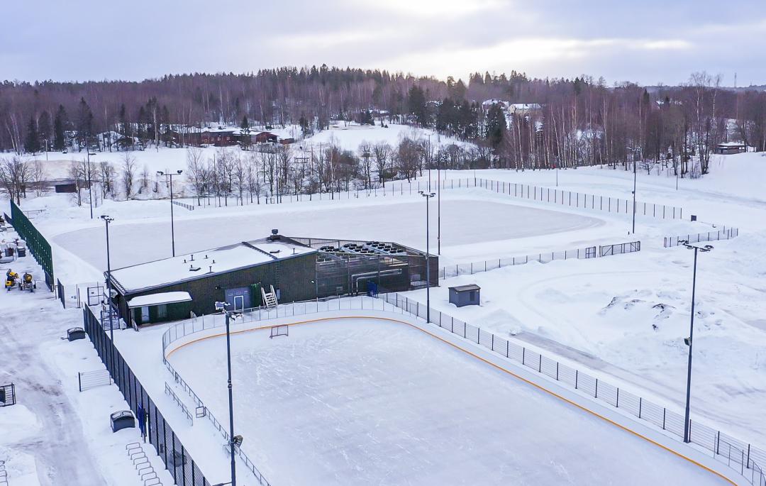 Kuvan Hakunilan tekojääkenttä avautui luisteltavaksi jo marraskuun alkupuolella. Tervetuloa luistelemaan!