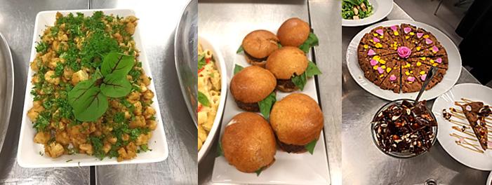 Valmistimme mm. vegaanisen ceasarsalaatin, tofu-skagenia siemennäkkärillä, vegaanisen saaristolaislautasen, seitansashlikiä ja tzatsikia, burgundinpataa, vegaanisen wienerleikkeen, graniittiomena eaton mess:in vaniljakreemillä ja vadelmavaahdolla.
