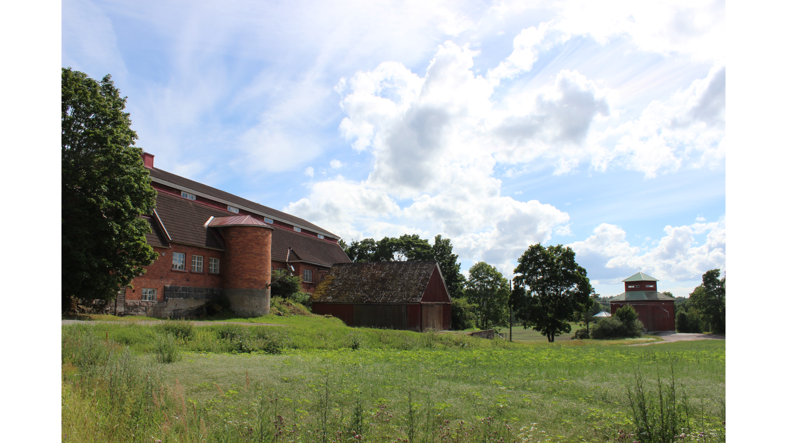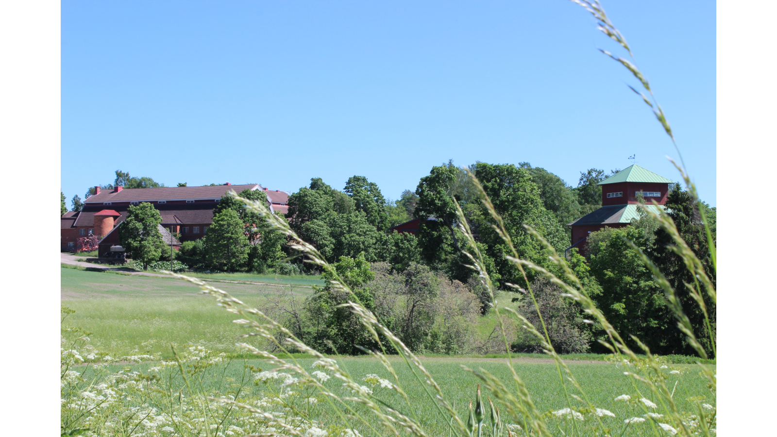 Peltojen ympäröimä mylly ja maatilaa vierustava maisemakukkapelto koristavat Katrinebergin historiallista maisemaa.