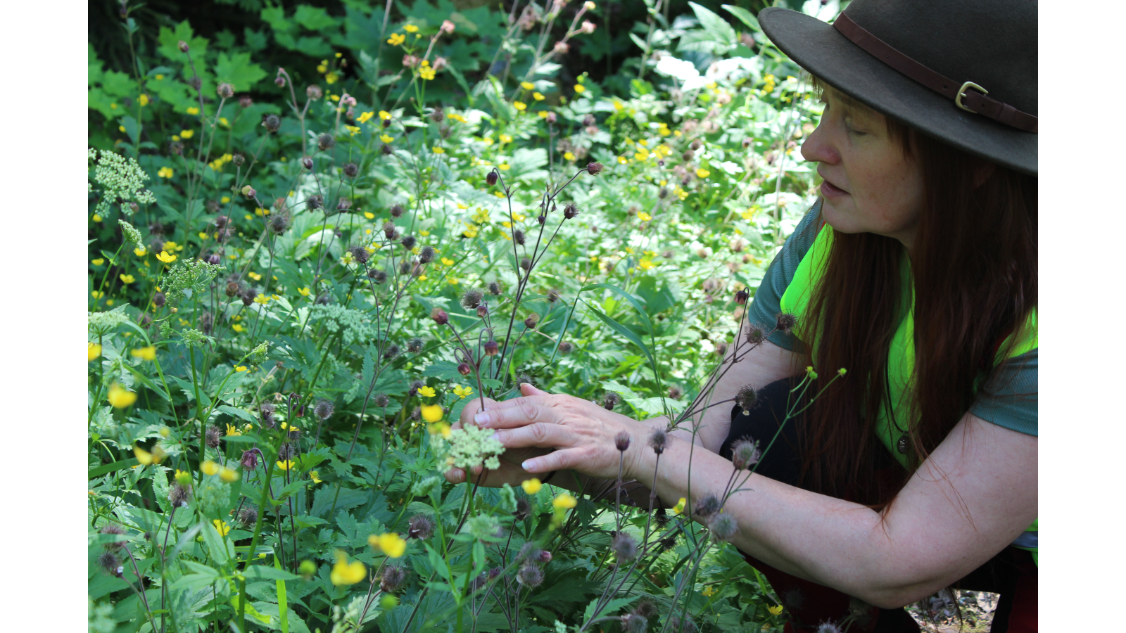 Mari Kajasvirta esittelemässä nokkosenkukkia retkeläisille.