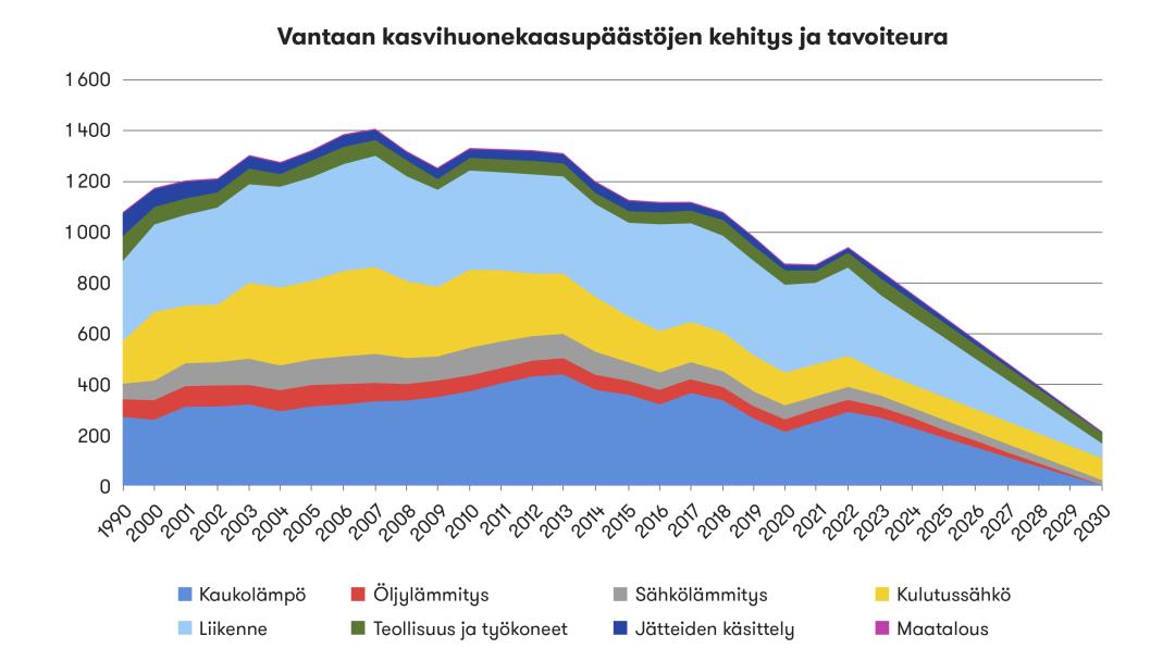 Vantaa on asettanut tavoitteekseen olla hiilineutraali vuonna 2030. Tavoite koskee sekä Vantaan kaupunkiorganisaation omaa toimintaa, että toimia, joilla kaupunki tukee vantaalaisten asukkaiden mahdollisuuksia elää ilmastoystävällisesti.