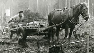 VR:n viimeiset hevosmiehet raivasivat ratalinjaa nykyisen Louhelan aseman tienoilla 26.10.1971. Kuva: O. Lehtonen, Suomen Rautatiemuseo.