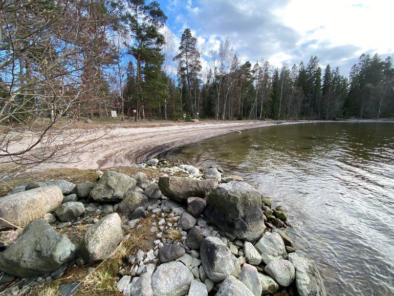 Krokholmenissa on hieno hiekkaranta, joka sopii myös lapsille, kunhan muistaa huomioida ohi kulkevan laivaliikenteen.