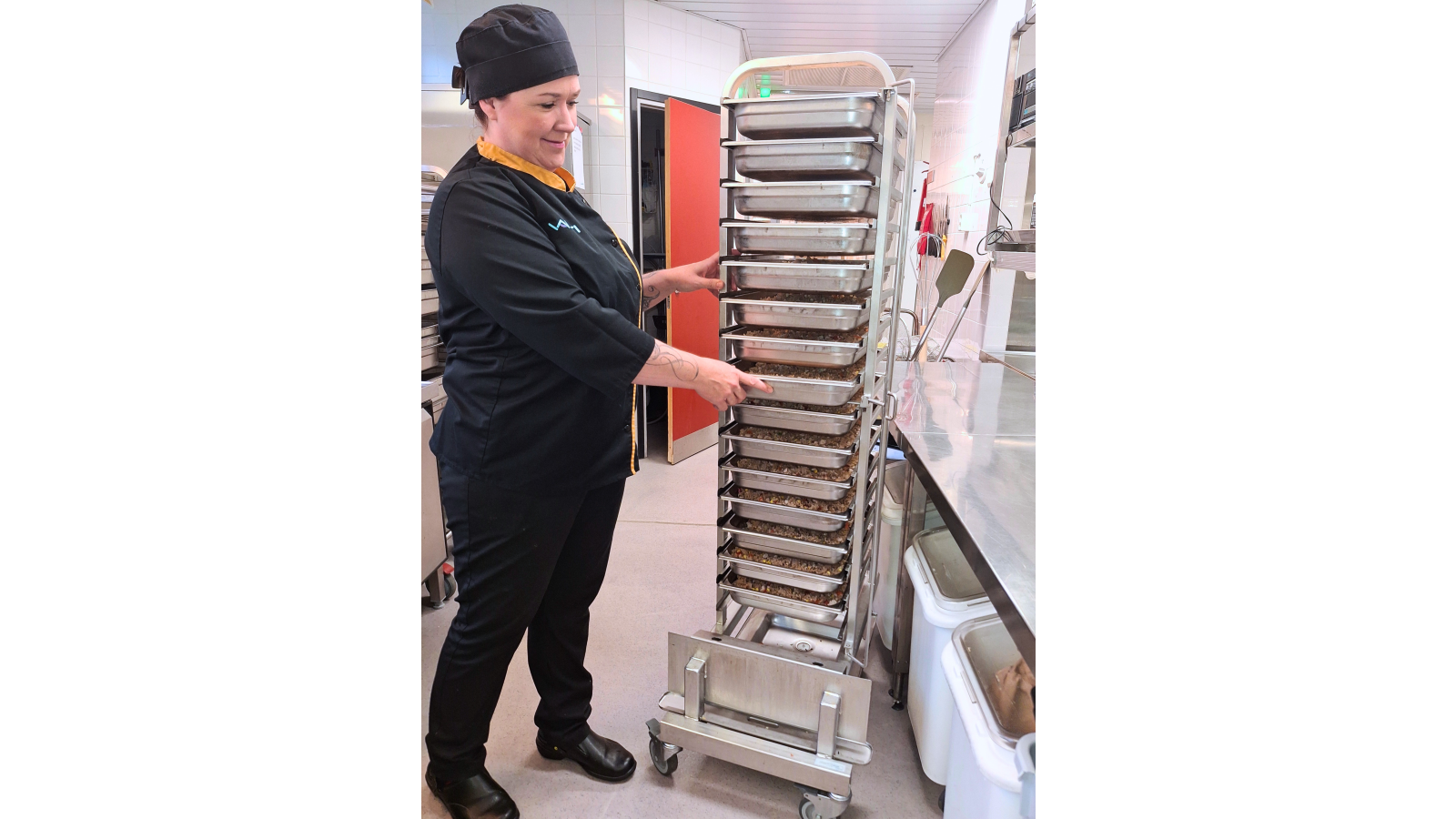 Ruuan matka raaka-aineista broilerilasagneteksi on alkanut jo edellisenä päivänä. Kaksi Vantin kokkia, Ruth ja Eveliina, ovat pistäneet pastat ja broilerit sekaisin Varian Koivukylän keittiössä.