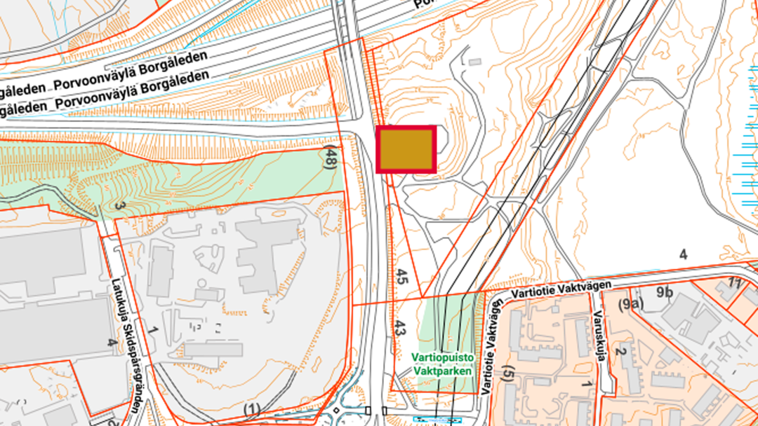 Tarkka rakennustöiden sijainti selviää alla olevasta kartasta, johon työmaa-alue on merkitty ruskealla laatikolla, punaisin reunuksin.
