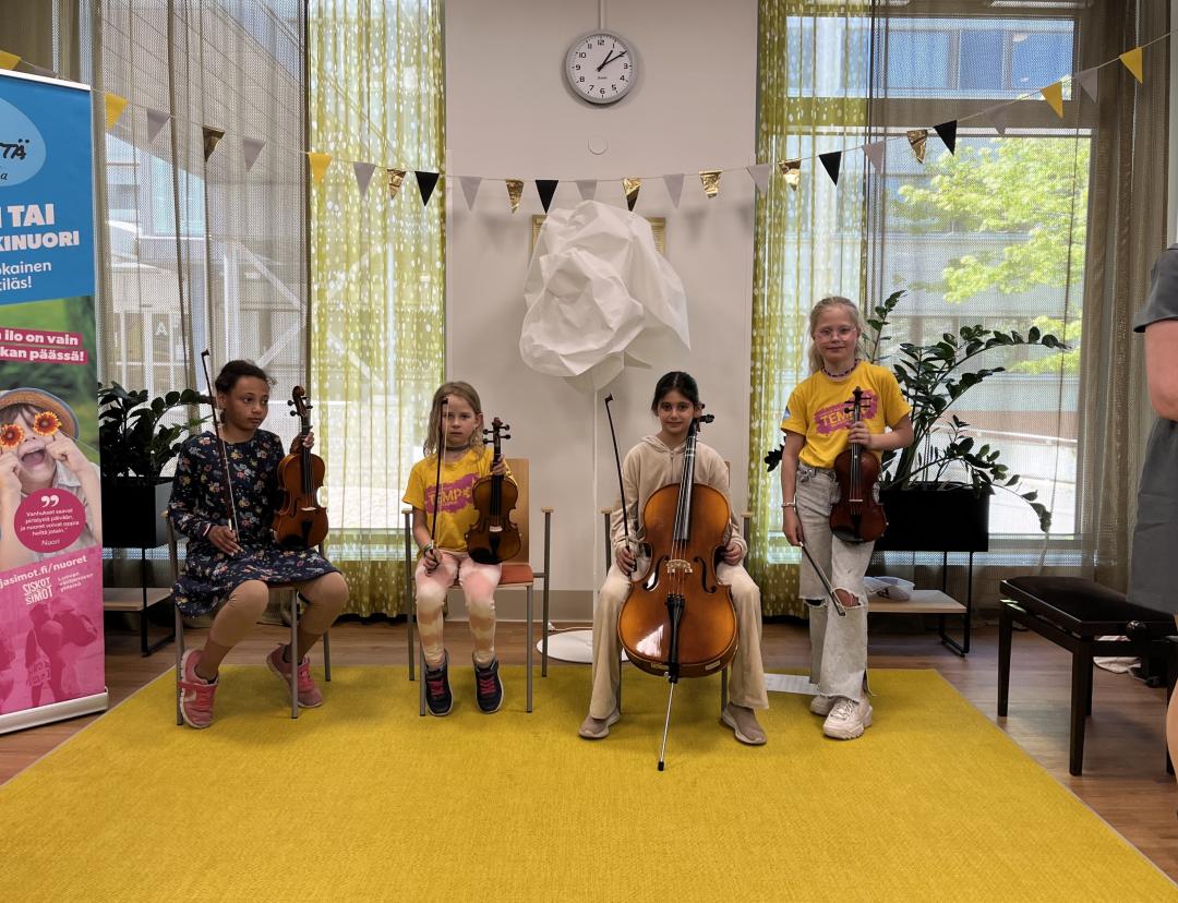 Torstaina 23.5. Uomarinteen koululaiset ilahduttivat Myyrmäen vanhustenkeskuksen asukkaita. Koululaiset esittivät kuorolaulun ja soittivat koulun Tempo-orkesterista tuttuja kappaleita. Samalla juhlistettiin 50-vuotiasta Vantaata.