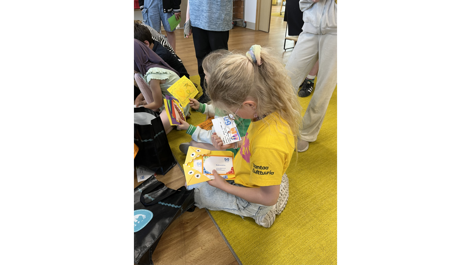 Myyrmäen vanhustenkeskuksen tapahtumasali oli täynnä talon asukkaita, kun koululaiset aloittivat tilaisuuden soittamalla ja laulamalla. Siskot ja Simot -järjestö oli järjestänyt iltapäivän yhteisen hetken, jossa lasten ja ikäihmisten oli mahdollista viettää aikaa yhdessä. Tapahtumassa jaettiin myös lasten askartelemia onnittelukortteja 50-vuotiaalle Vantaalle. Korteista saatiin aikaan mukavia keskusteluja lasten ja ikäihmisten kesken.