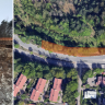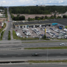 Jalankulun ja pyöräilyn reiti on merkitty karttaan sinisellä, bussipysäkki V6407 vihreällä ja työmaa-alueet ruskealla punaisin reunuksin.