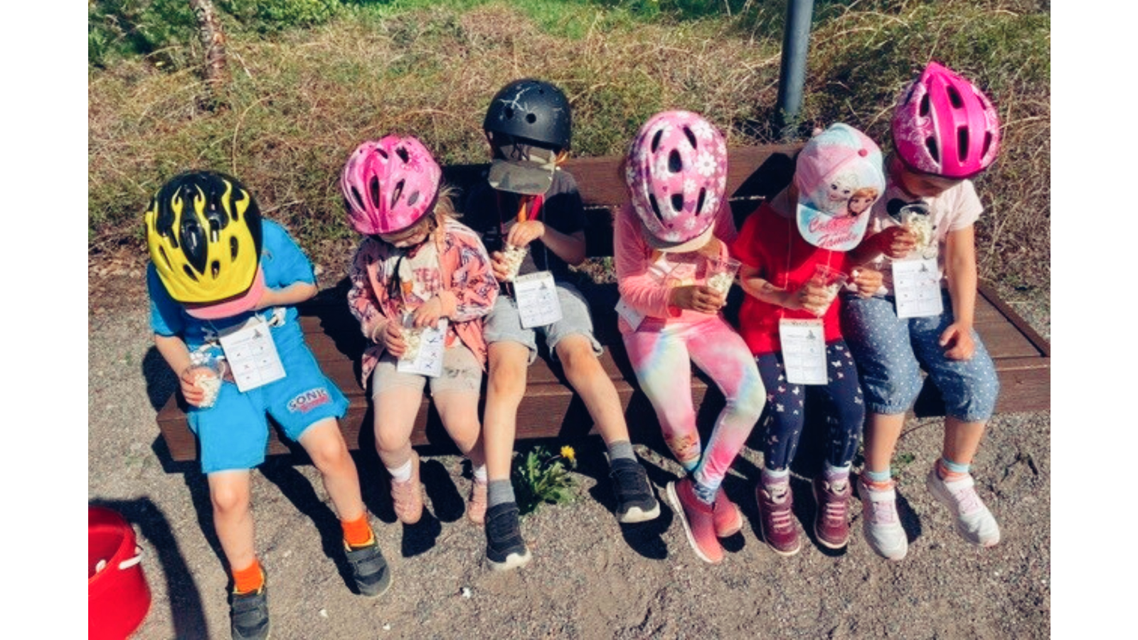 Ensimmäinen kierros ajetaan yhdessä: aikuinen edellä ja lapset perässä. Testikierroksella kerrataan vielä liikennesäännöt ja -merkit sekä pyörän pesu- ja huoltopisteiden sijainnit. Sitten lapset pääsevät ajamaan ihan itse.