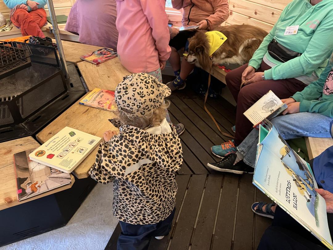 Lapset pääsivät lukemaan kirjoja lukukoirille Aliinalle ja Lunalle.