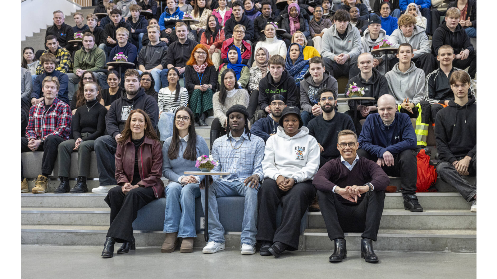 Ennen kierrosta tasavallan presidentti tapasi Varian opiskelijoita Opinportailla. Opiskelijat saivat esittää presidentti Stubbille kysymyksiä.