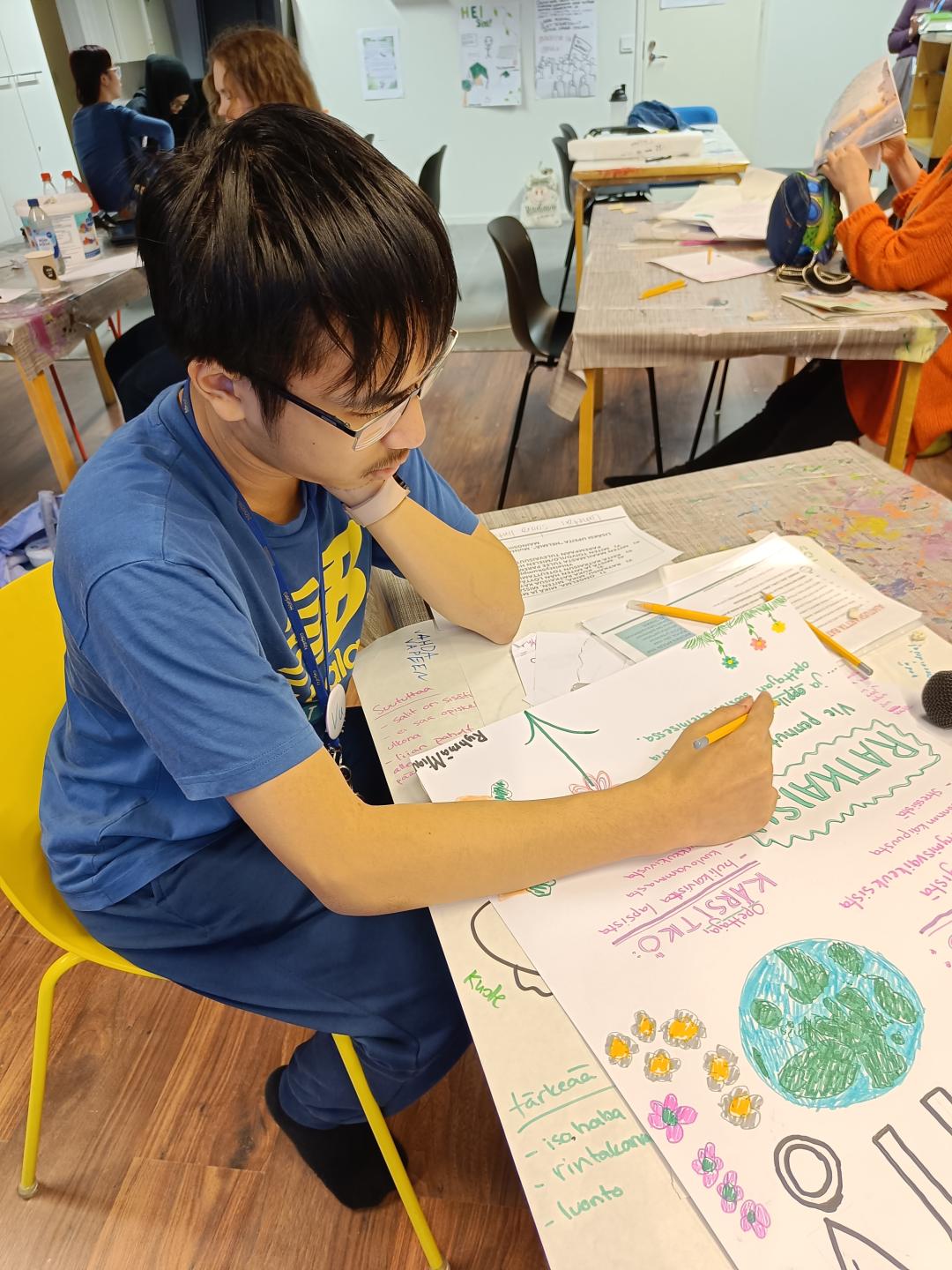 — Tuntuu upealta, että vain muutaman päivän tuttavuuden voimilla oppilaat tekevät vaikuttavaa työtä todella monipuolisilla työtavoilla: piirtävät, suunnittelevat, tekevät videoita, kirjoittavat ja keskustelevat ryhmissä, Laura jatkaa.