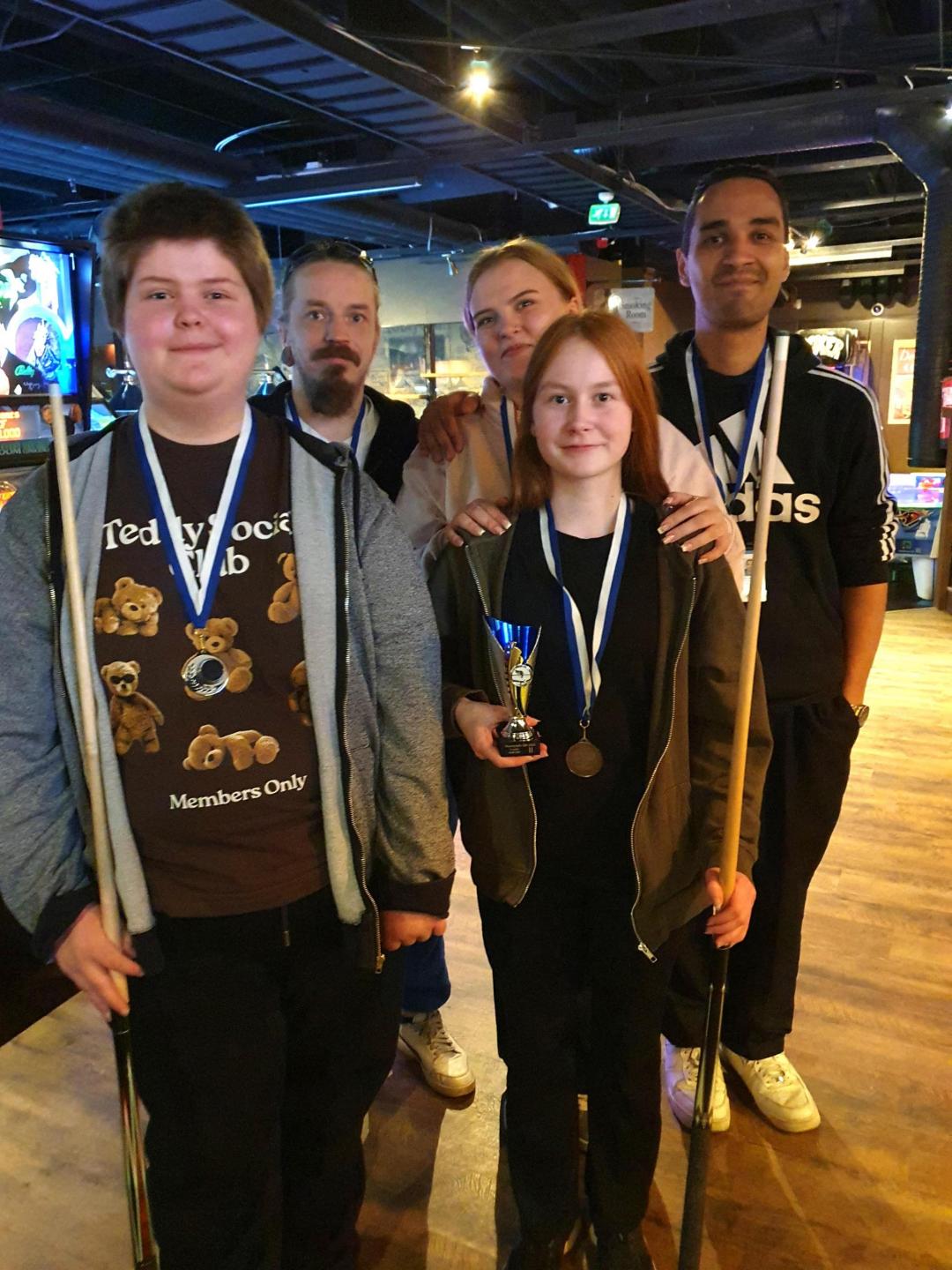 Pähkinärinteen nuorisotilalla on ollut menestystä biljardikisoissa tänä vuonna: poikien joukkue voitti kultaa Vantaan nuorisotilojen välisessä turnauksessa helmikuussa.