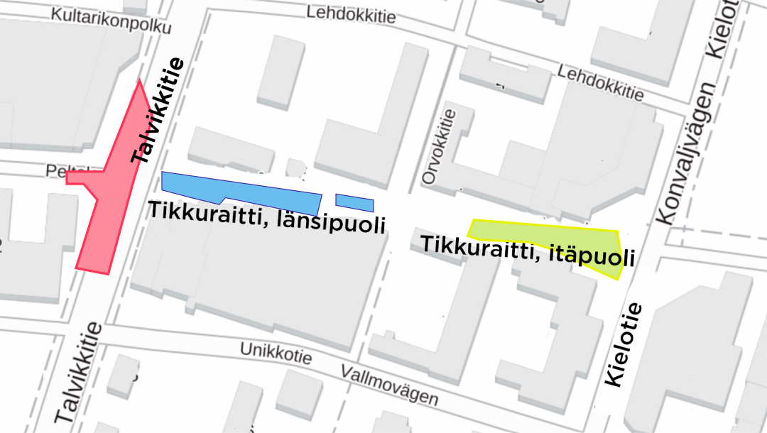 Tikkuraitin kunnostaminen kaventaa kulkuväylää ja aiheuttaa melua Kielotien puoleisessa päädyssä marras–joulukuusta alkaen