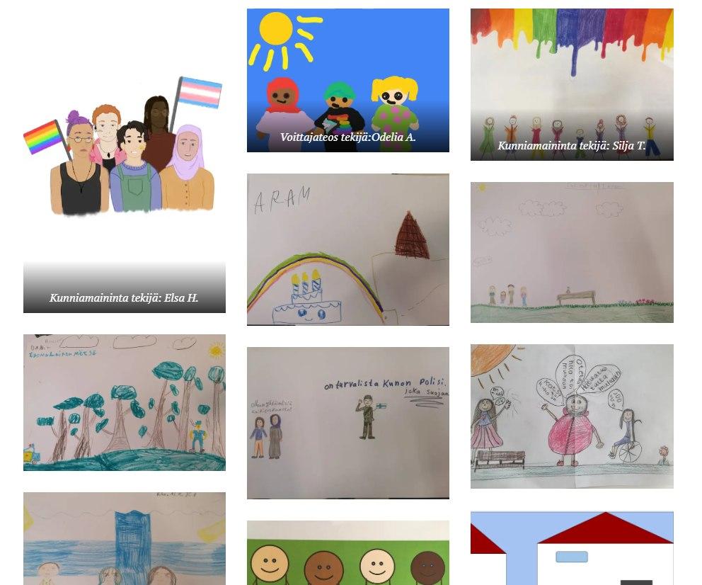 Järjestimme vantaalaisille lapsille ja nuorille turvallisemman tilan kuvituskuvakilpailun keväällä 2022. Tarkoituksena oli piirtää tai tuottaa kuvistuskuva vantaan turvallisemmille tiloille. Kilpailuun lähetettiin 86 upeaa kuvaa. Raadin valitseman voittajan kuva toimii nyt Vantaan kaupungin turvallisempien tilojen kuvistuskuvana. Kaikista upeista kilpailuun lähetyistä kuvista koostimme upean verkkonäyttelyn. Näyttelyyn voit tutustua täältä: Linkki verkkonäyttelyyn