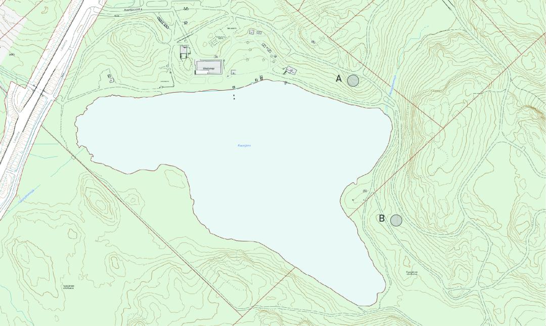 Etätyöpisteet on äskettäin asennettu Kuusijärvelle näkyville paikoille. Niitä on kaksi ja ne on asennettu hieman eri korkeuksille eripituisia käyttäjiä ajatellen. Piste B on hieman ylempänä kuin piste A. Oheisessa kartassa on merkitty pisteiden suurpiirteiset sijainnit ja alla löytyy myös pisteiden koordinaatit.