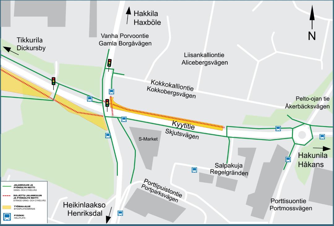 Samalla Kyytitien Vanha Porvoontie – Salpakuja osuudella pohjoispuolen kävely- ja pyörätie suljetaan, ja se muuttuu työmaa-alueeksi. Alueella tehdään tulevien työmaiden valmistelua. Esimerkiksi kaukolämpöputkia siirretään työmaan kohdalta uuteen paikkaan, lisäksi työmaalle tehdään vesienhallintaa ja työaikaista valaistusta. Töitä alueella tehdään pääsääntöisesti klo 7–20, mutta joinakin päivinä työt joudutaan aloittamaan jo klo 6 liikenteen ruuhkaisuuden vuoksi.