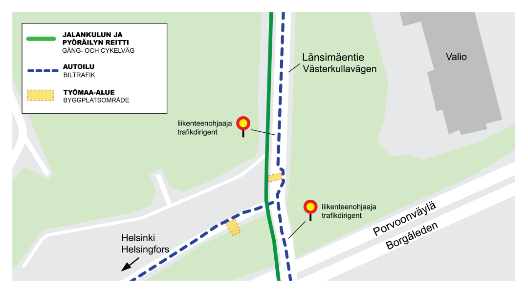 Länsimäentiellä on useampi liikenteeseen ja kulkuun liittyvä järjestely, minkä vuoksi alueella kulkemiseen on hyvä varata tavallista enemmän aikaa. Alueella järjestetään turvallinen poikkeusreittien kulku, minkä vuoksi kehotamme seuraamaan opasteita.