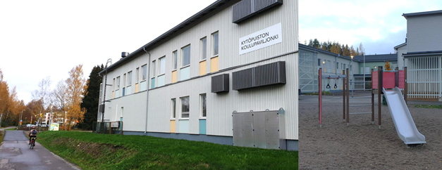 Kuvissa väistötila: Kytöpuiston koulupaviljonki