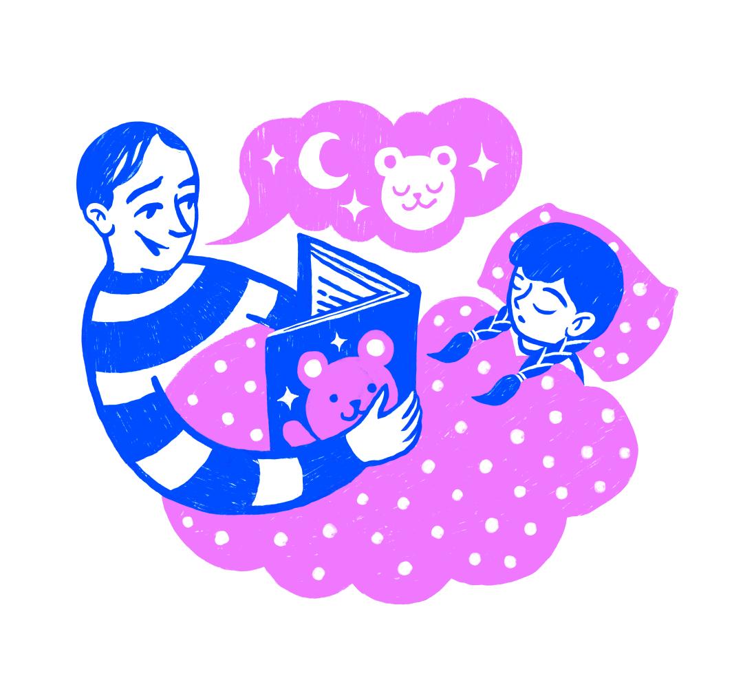 Voitte sopia esimerkiksi oman lukupäivän. Lukupäivä on kerran viikossa ja sinä päivänä on sovittu, että pidetään lukutuokio. Lapset oppivat odottamaan satutuokiota ja lukeminen pysyy myös aikuisten mielessä, kun se on merkitty kalenteriin. Myös kirjastoreissusta voi tehdä rutiinin. Lukupuu tai lukumato voi myös motivoida lukemaan useammin.