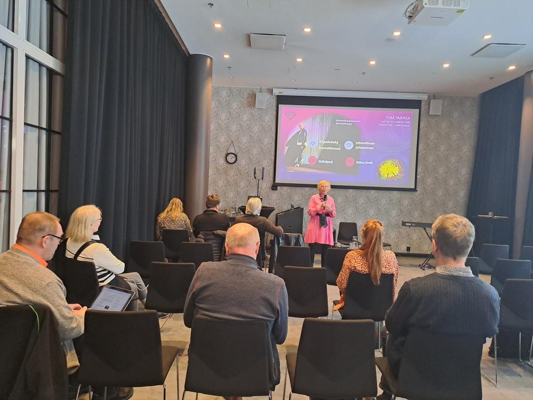 Tiina Parikka on toiminut pitkään valmentajana ja yrittäjänä. Tiina kertoi mm. että, yli 50-vuotiaiden palkkaaminen on liiketaloudellisesti kannattavaa ja miten yli 50-vuotiaiden rooli näkyy työpaikalla mm. ongelmanratkaisijana, sitoutuneisuutena, vuorovaikutustaitoisina ja itsensä tuntevina työntekijöinä.
