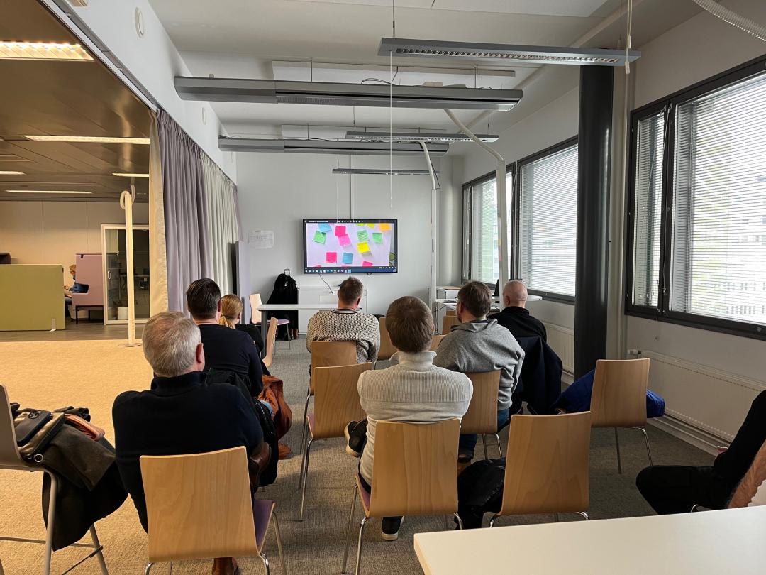 Kuva infotilaisuudesta 20.3.2024. Kaikki kuvan henkilöt tiesivät, että kuva otetaan ja lupa julkaisulle saatiin.