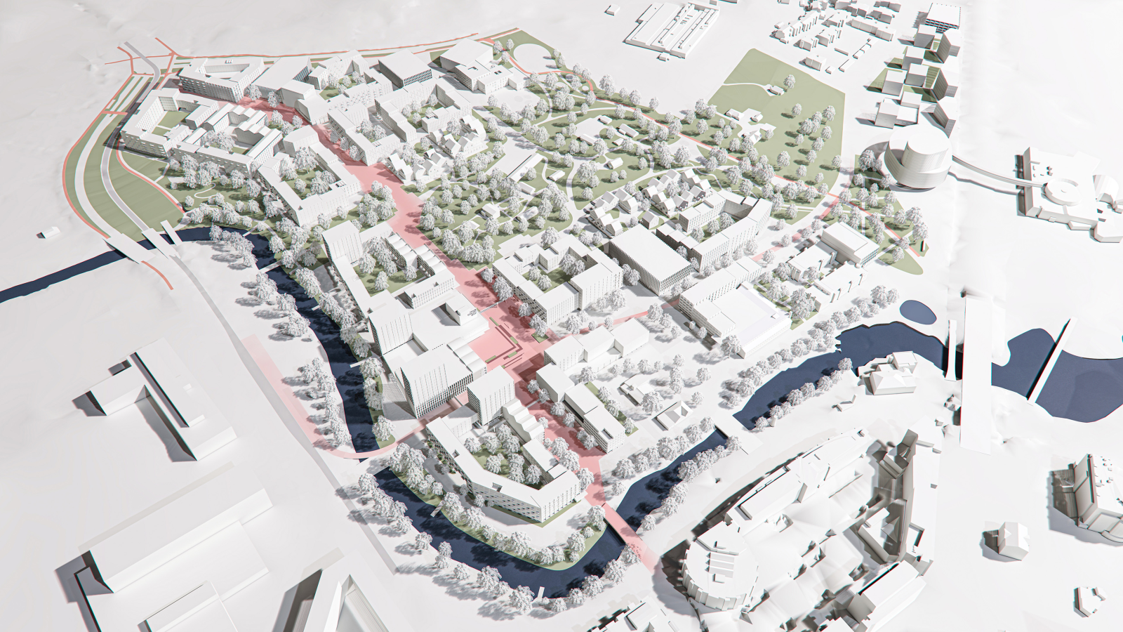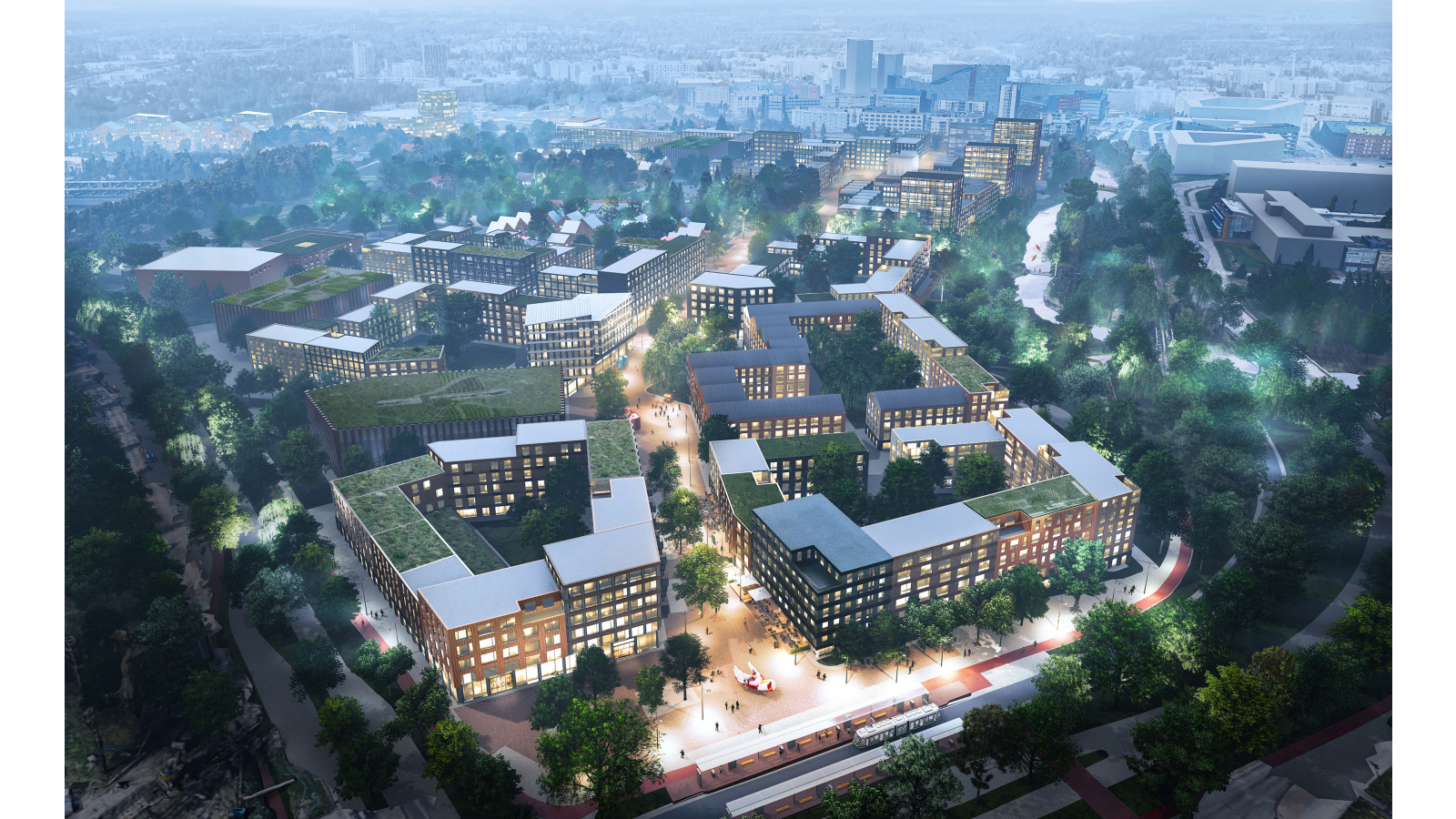 - Kestävä liikkumisen alue ja fyysisesti ja toiminnallisesti värikkäät kaupunkikorttelit sijoittuvat lomittain vihreän puistokaupungin kanssa.