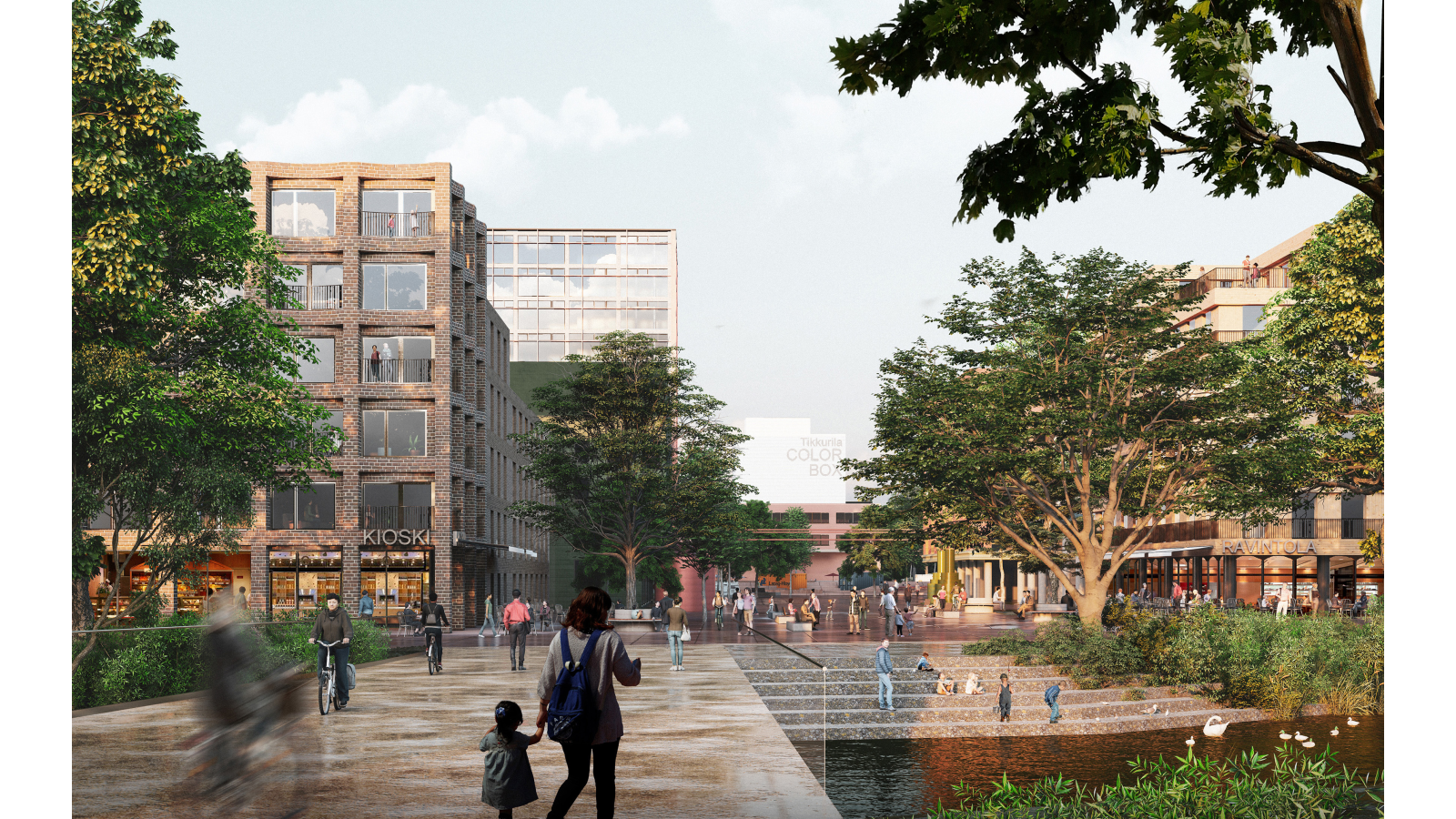 - Suunnitelma tuo esiin tärkeät kaupunkitilat kuten Tikkurilalle tunnusomaisen jokimaiseman ja koskiympäristön sekä Kuninkaantien sillan alueen - portin Väritehtaan alueelle.