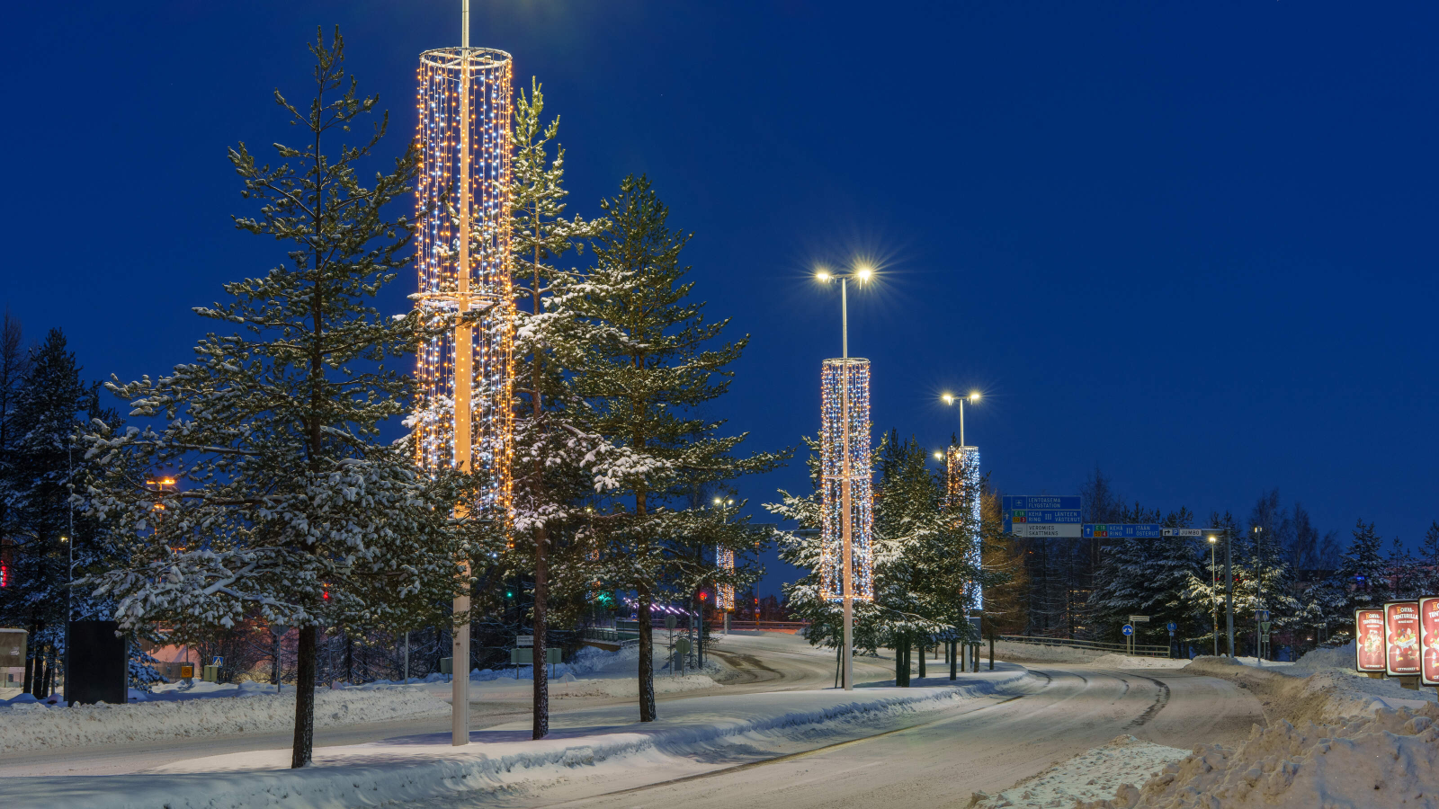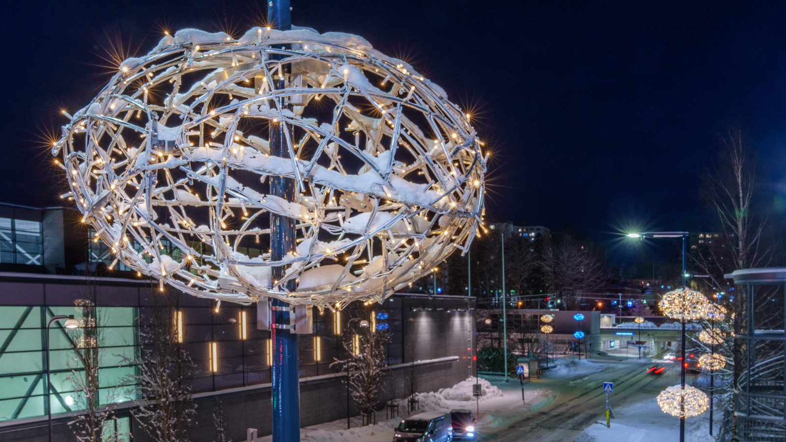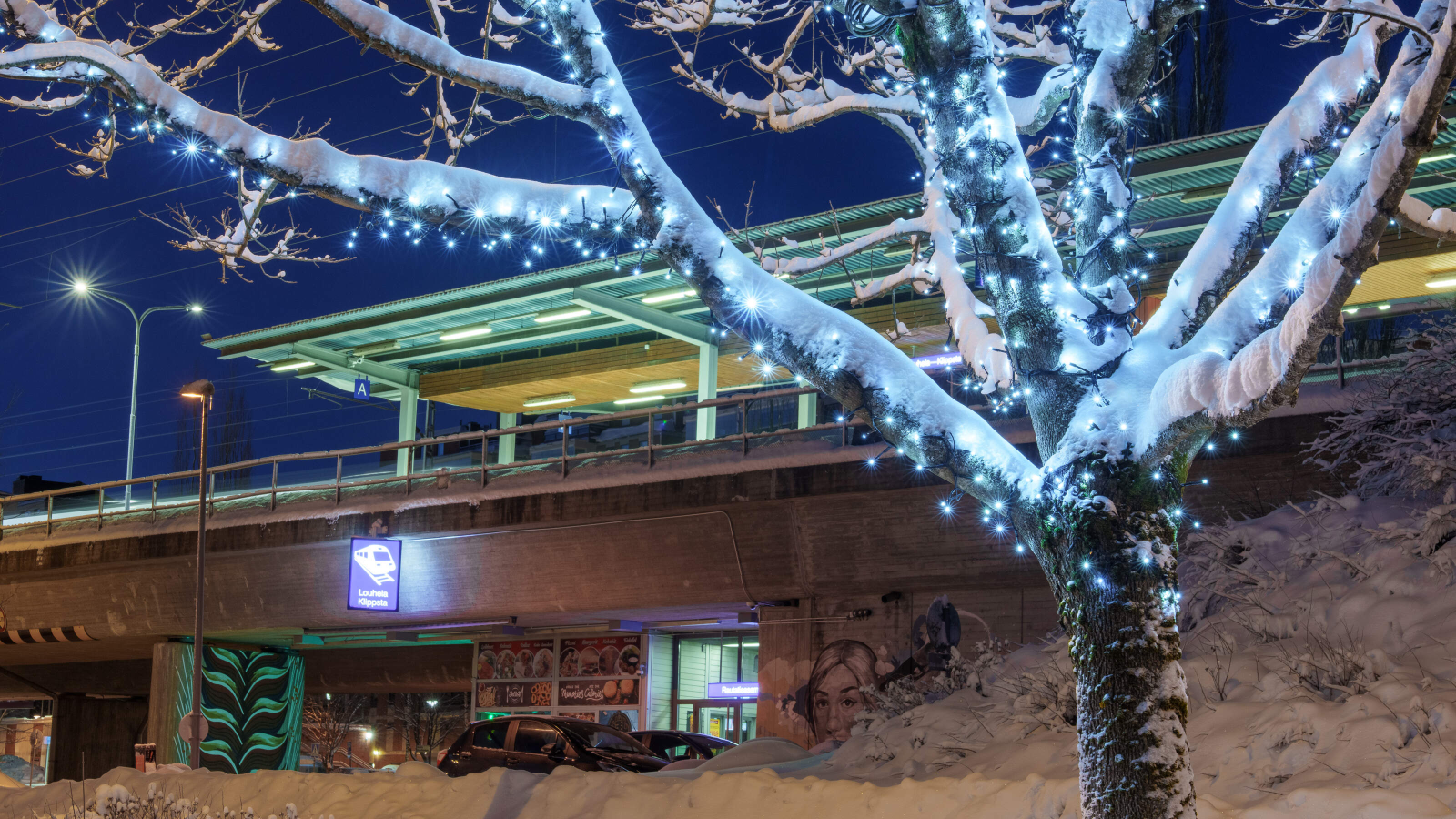 - Tikkurilassa ohikulkijoita ilahduttaa kaupungintalon edustan joulukuusen lisäksi Kielotien samppanjalasien näköiset valot sekä Peltolantorin valaistut puut.