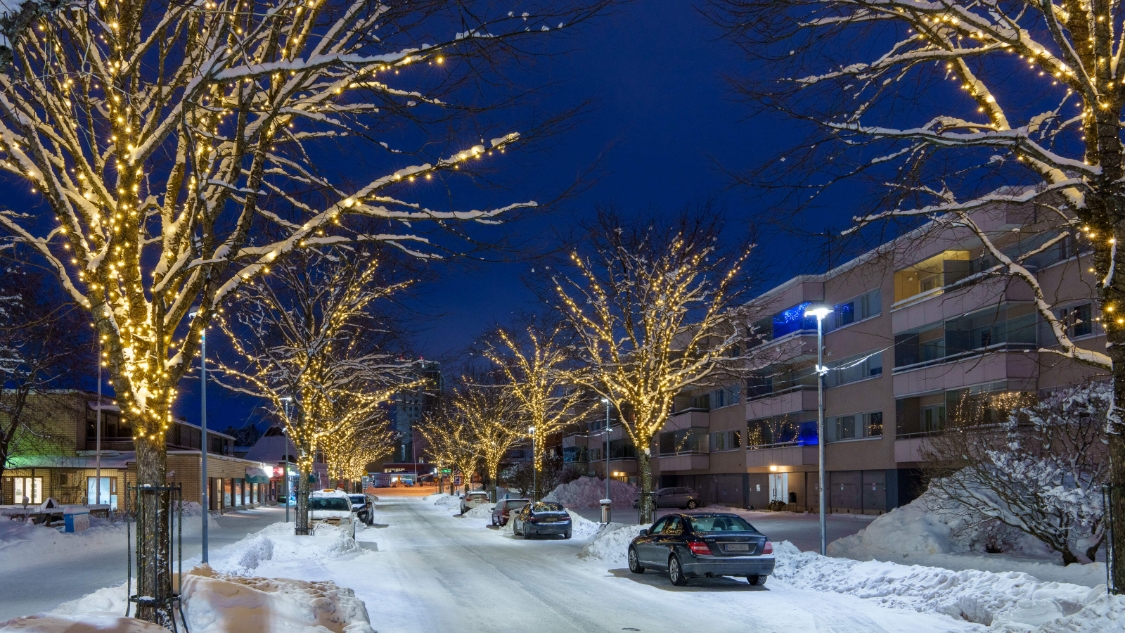 - Kivistössä jouluvaloja on Topaasiaukiolla.