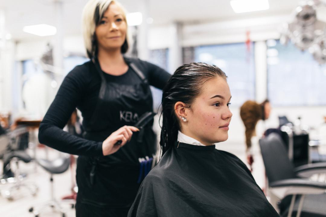 Parturi-kampaaja-opiskelijat tekevät asiakkaille kaikenlaisia hiusalan töitä.