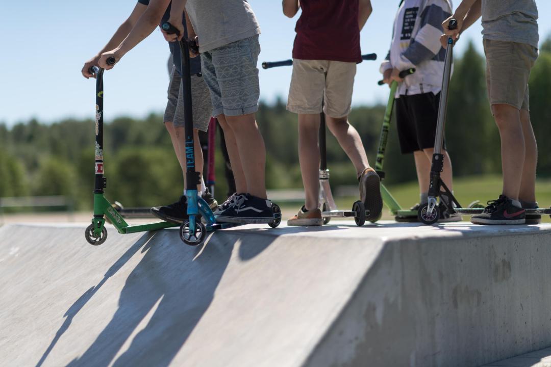 Scoottajia Hakunilan skeittipuistossa.