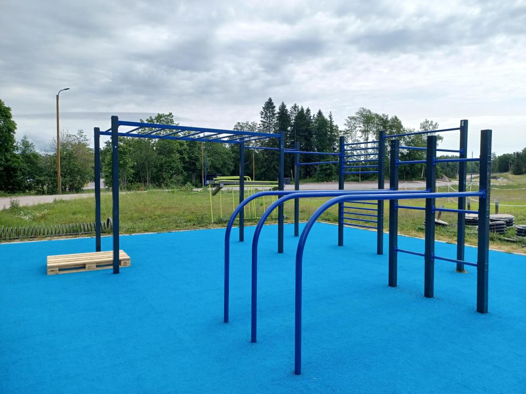 - Ulkokuntoiluvälineille on useita sisääntuloreittejä. Kuntoiluvälineet sijaitsevat joustopäällysteisellä pinnoitteella (turva-alusta), erottuen alustasta tummuuskontrastin avulla. Kuntoiluvälineiden ympärillä on yleisvalaistus.