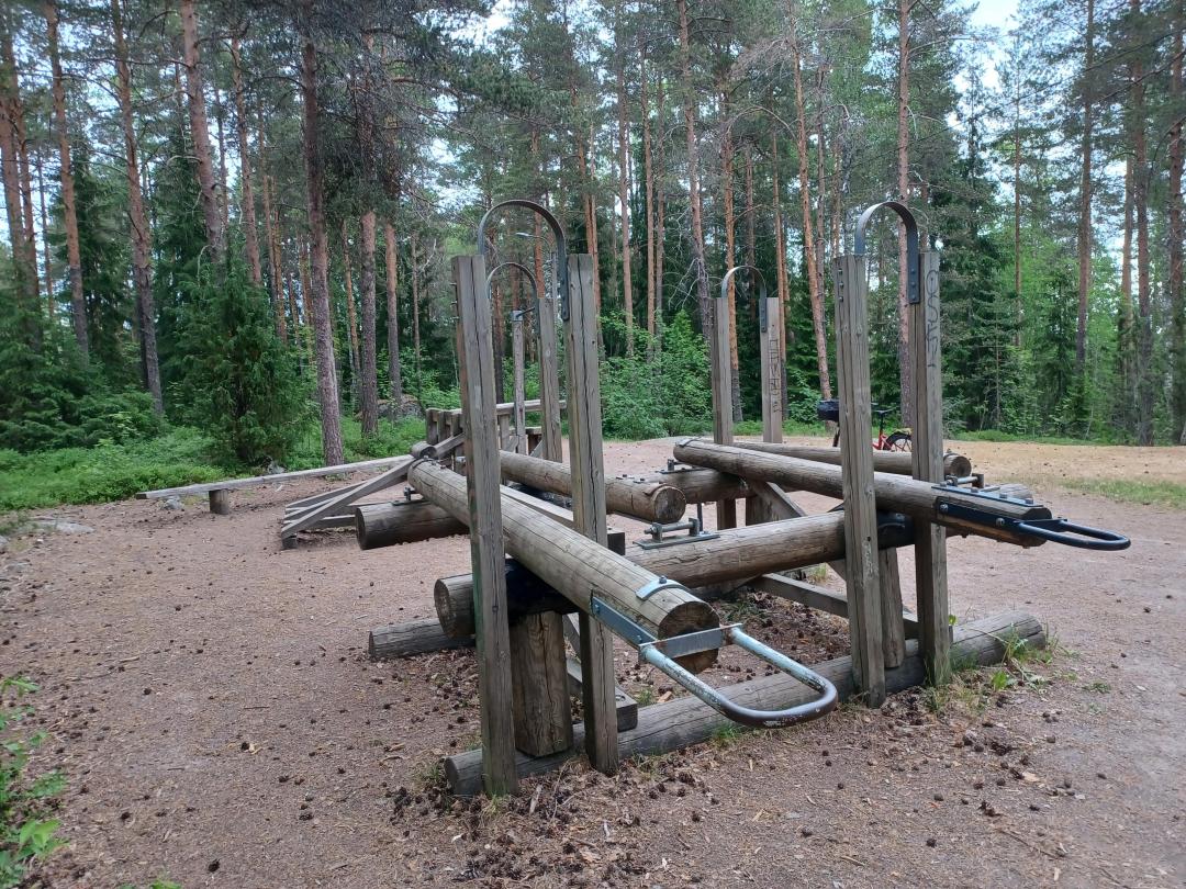 Keskelle rauhallista luontoa voi pysähtyä kuntoilemaan lenkkeilyn ohessa. Kuntoilupaikalla on tukkipatteri, jossa voi harjoitella muun muassa pystypunnerrusta. Lisäksi puiset ulkokuntoiluvälineet mahdollistavat vatsalihasliikkeiden ja leuanvedon harjoittelun.