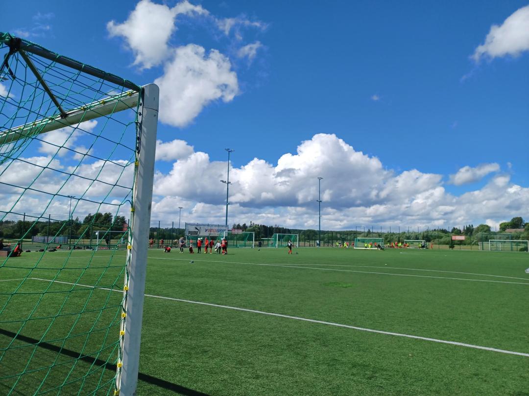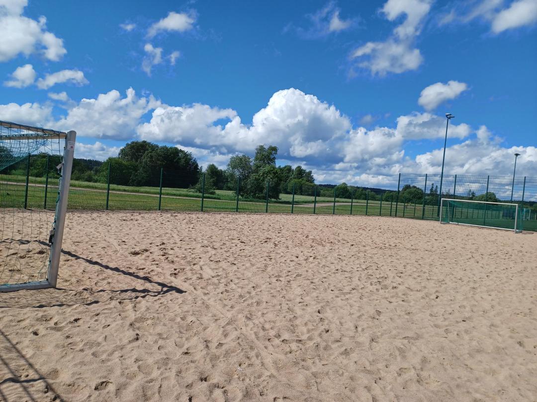 - Jalkapalloa voi pelata hiekkatekonurmipintaisellaaidatulla areenalla, jonka alusta erottuu tummuuskontrastilla ympäristöstä. Areenan reunus on korkea ja siinä on avattava portti, jonka leveys on yli 90 cm.