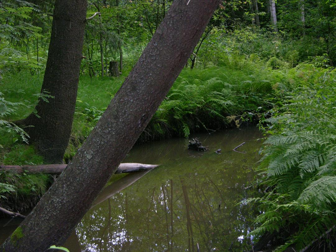 Kylmäojan varrella on rehevää kasvillisuutta.
