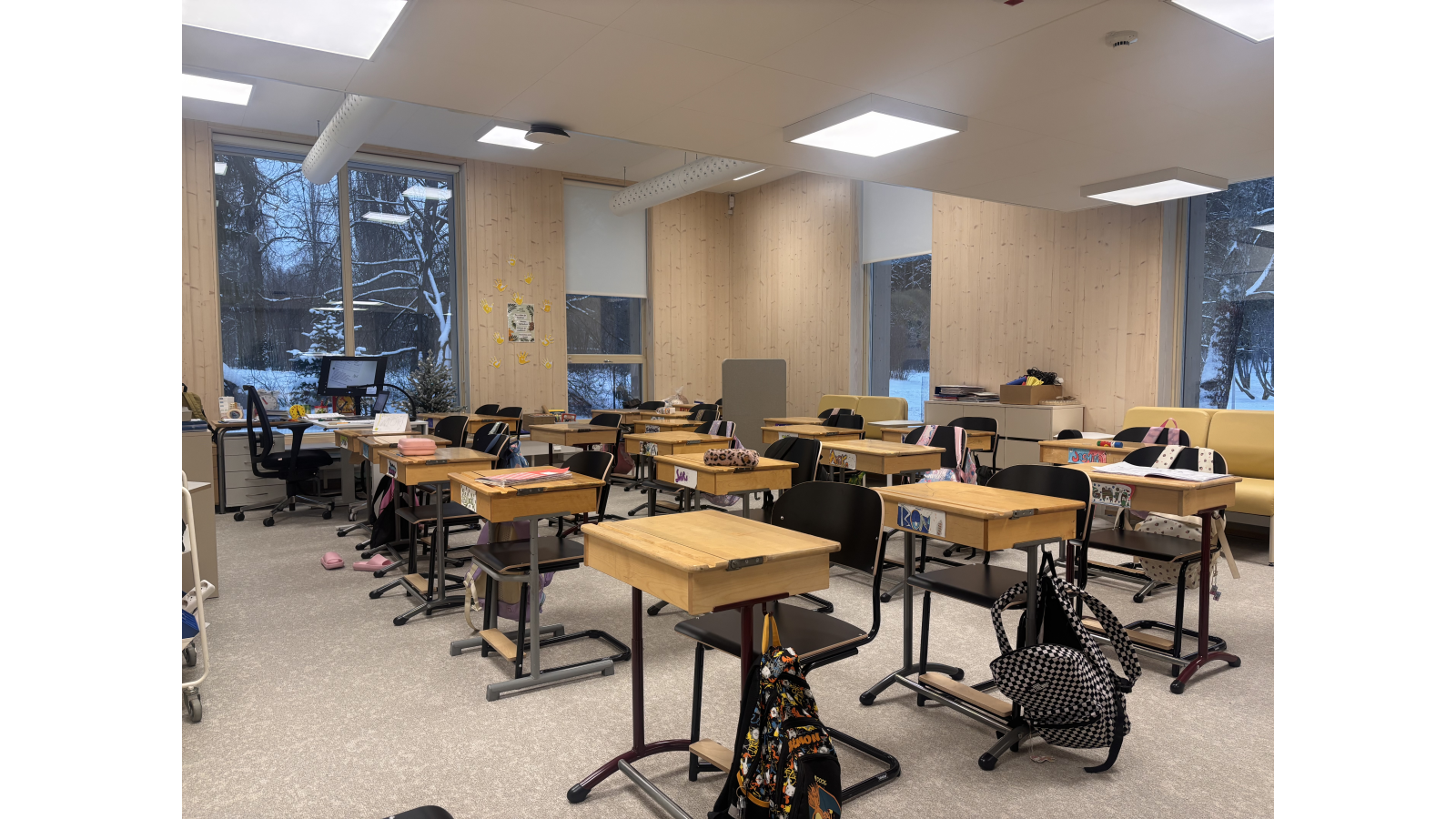 Koulumme oppilaita opettajineen saattaa nähdä opiskelemassa koulun pihalla, lähimetsässä tai ulkoilupoluilla. Meistä on mukavaa hyödyntää koulun vehreää lähiluontoa opiskelupaikkana. Opiskelussa hyödynnetään tietenkin myös tietotekniikkaa, käytämme tabletteja ja Chromebookeja kaikilla luokka-asteilla.