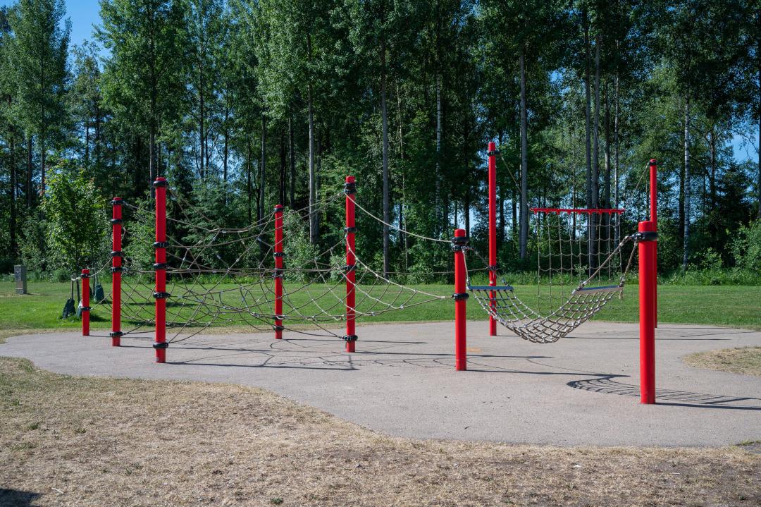 Puiston leikkipaikalla voi esimerkiksi keinua, kiipeillä, laskea liukumäkeä ja leikkiä hiekkaleikkejä.