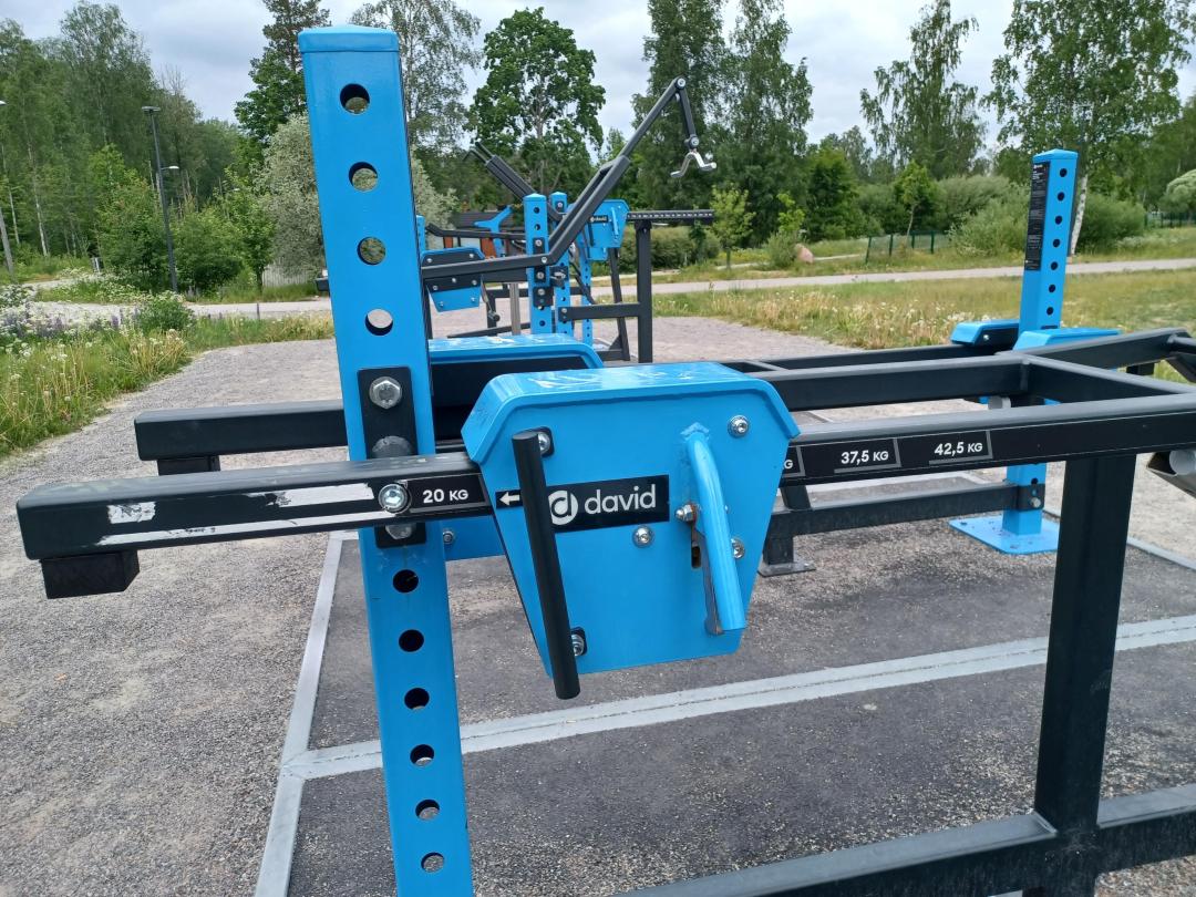 Ulkokuntoilupaikalla voi harjoitella monipuolisesti ylävartalon lihaskuntoliikkeitä, muun muassa penkkipunnerrus- ja pystypunnerruslaitteella.