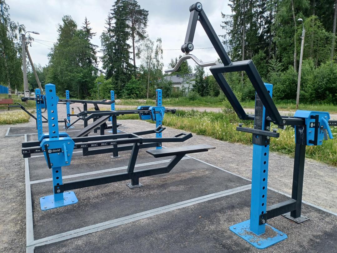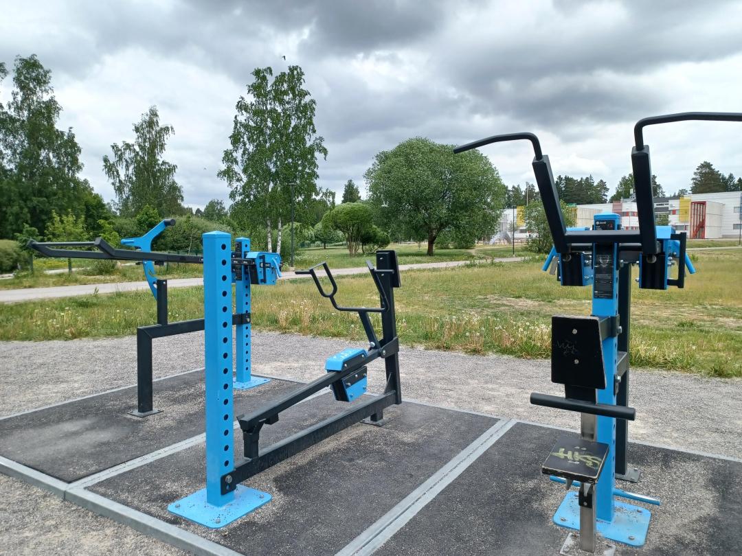 Ulkokuntoilupaikalla on muun muassa jalkakyykkylaite sekä alatalja- ja ylätaljalaite.