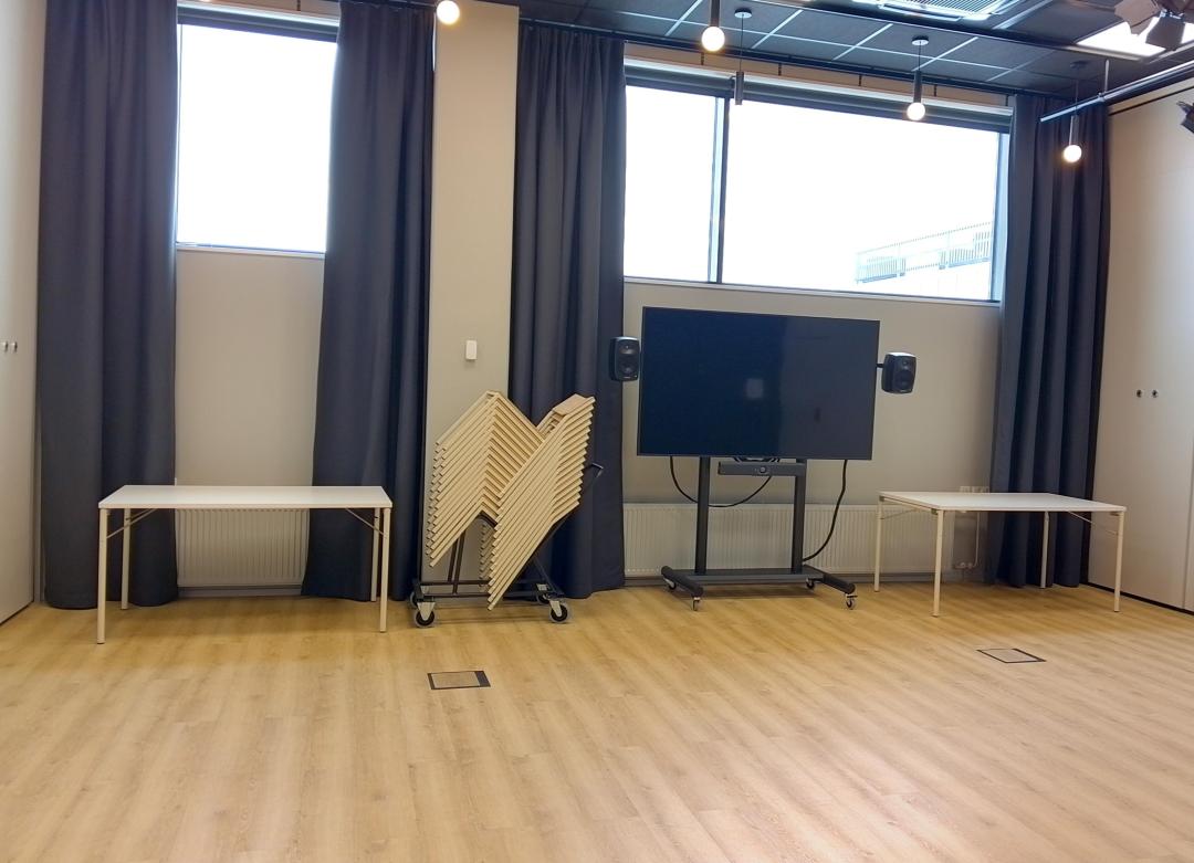 - Pöytiä ja tuoleja on saatavana lisää, mutta kaikki kalusteet eivät ole tilassa valmiina. Tilan käyttäjän on järjesteltävä ja purettava kalusteet varausajan puitteissa ohjeiden mukaisesti. Varaathan riittävästi aikaa kalusteiden siirtoon ja tilan siistimiseen.