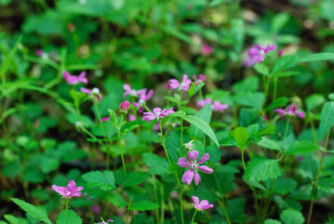 Mesimarjan kukka on vaaleanpunainen–sinipunainen.