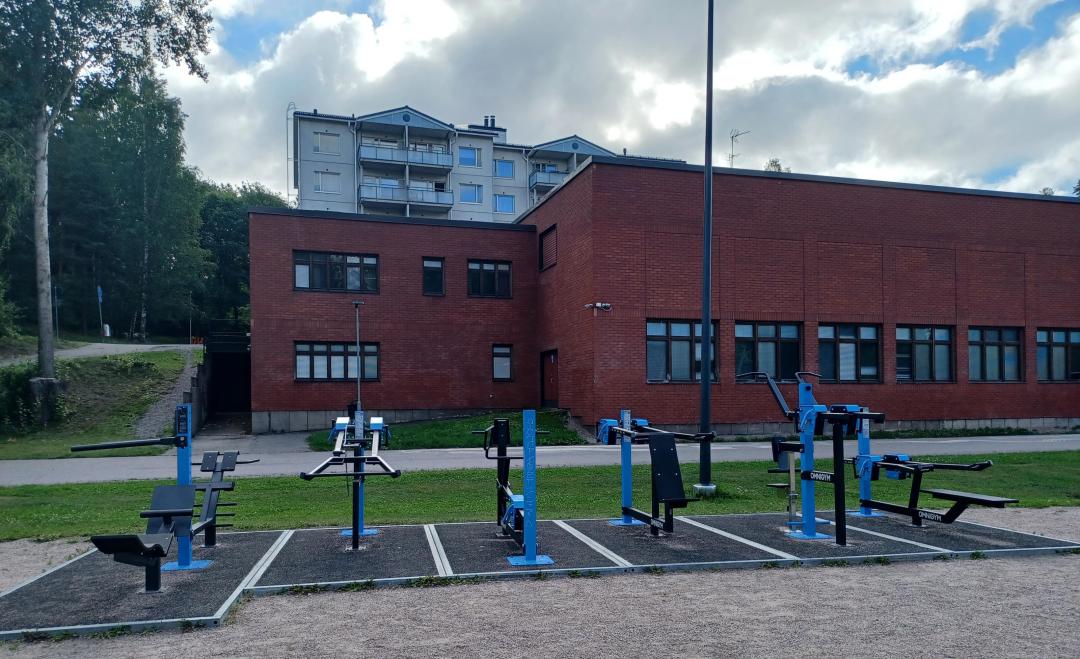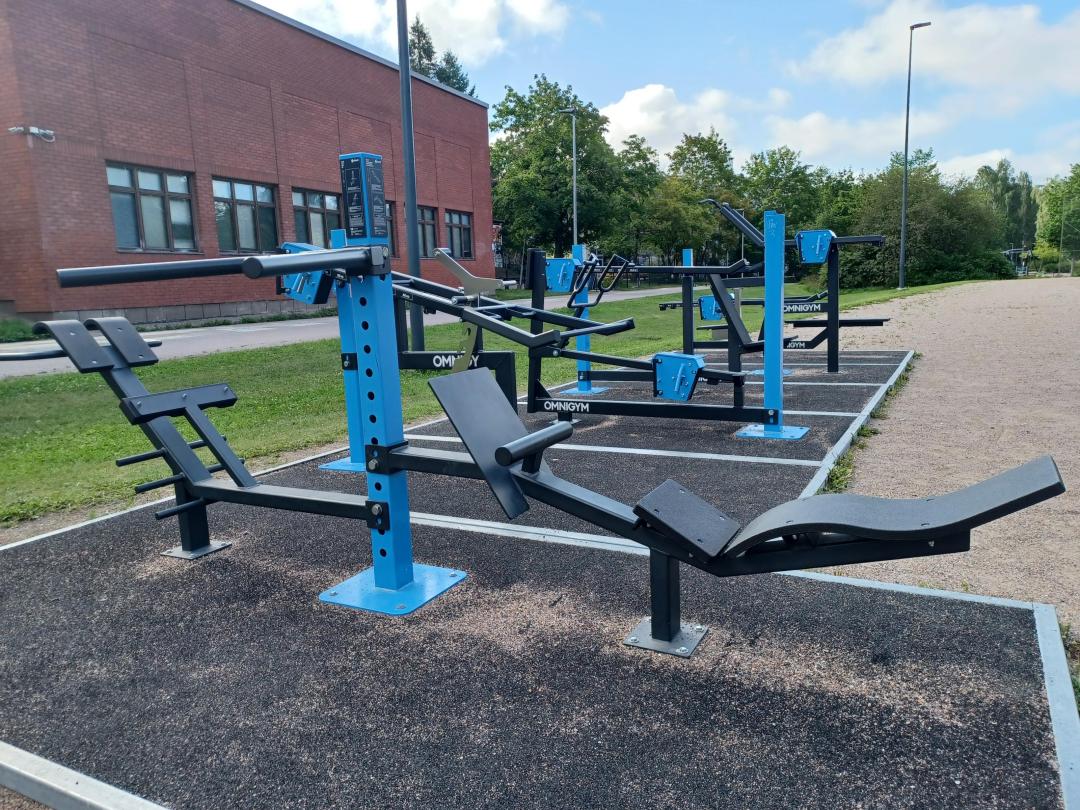 Ulkokuntosalilla on laitteet vatsa- ja selkälihasten vahvistamiseen sekä dippipunnerrusten harjoitteluun.