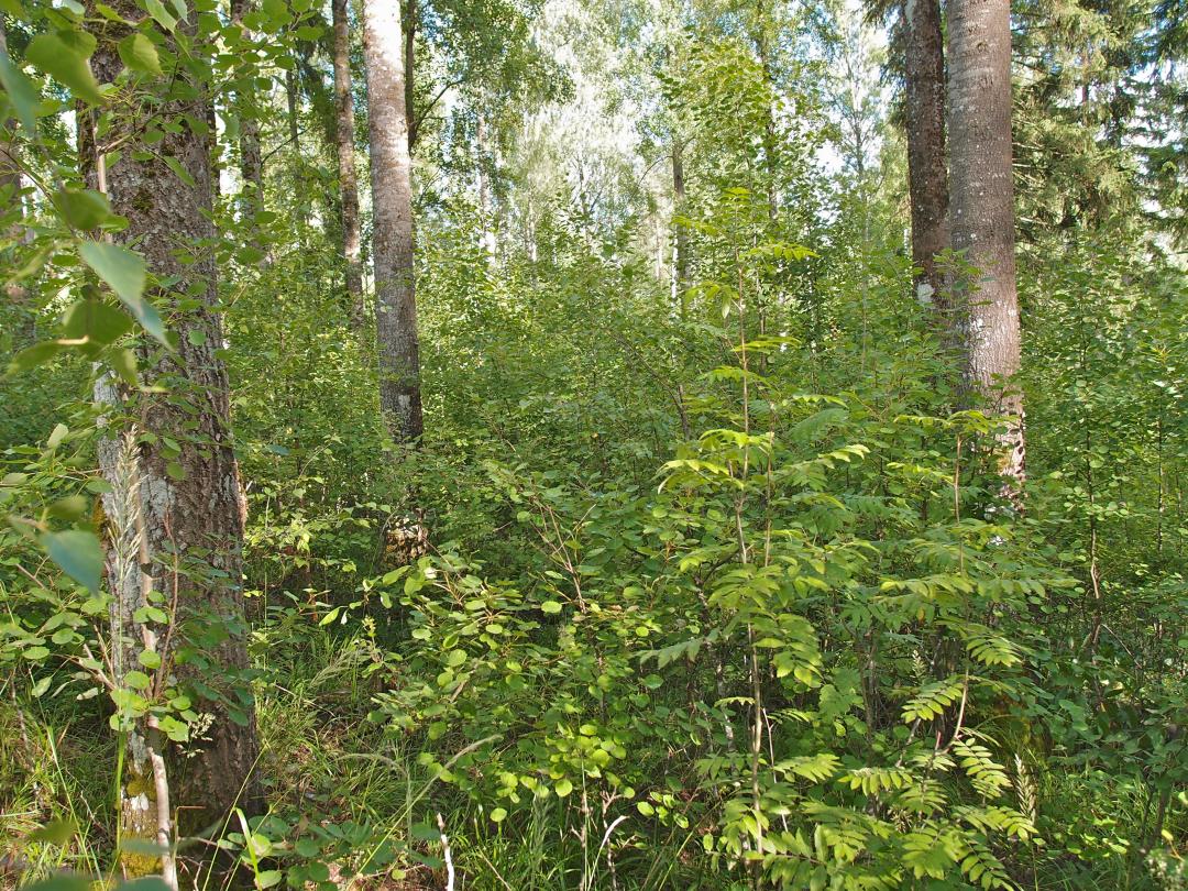 Riipilänmetsän puusto on nuorta, mutta alueella on myös järeitä haapoja.