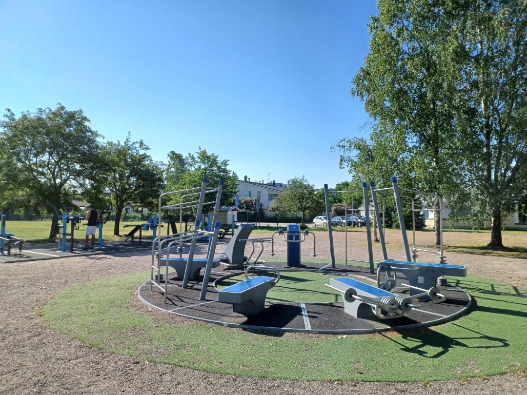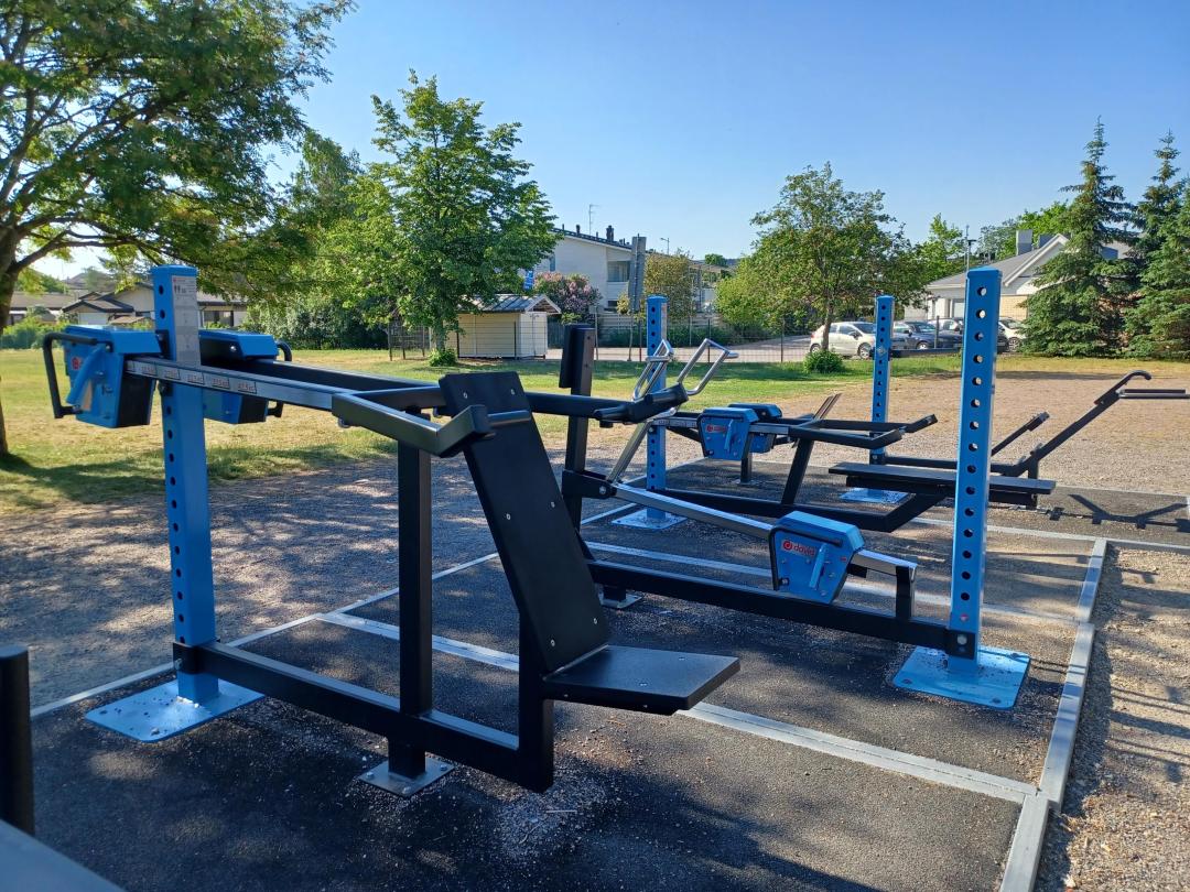 Tikkurilan urheilupuiston ulkokuntoilupaikan laitteita.