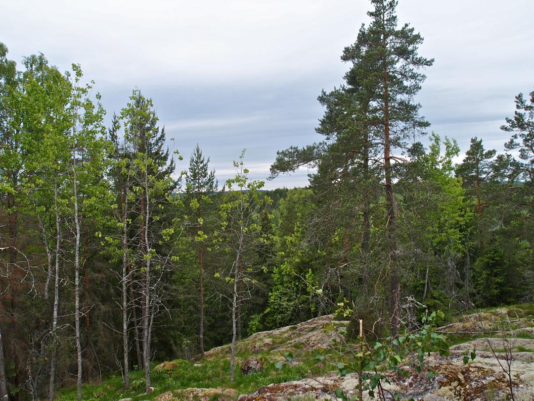 Puron länsipuolella kohoaa jyrkkä kallioinen rinne. Kallion laella on mäntymetsää.