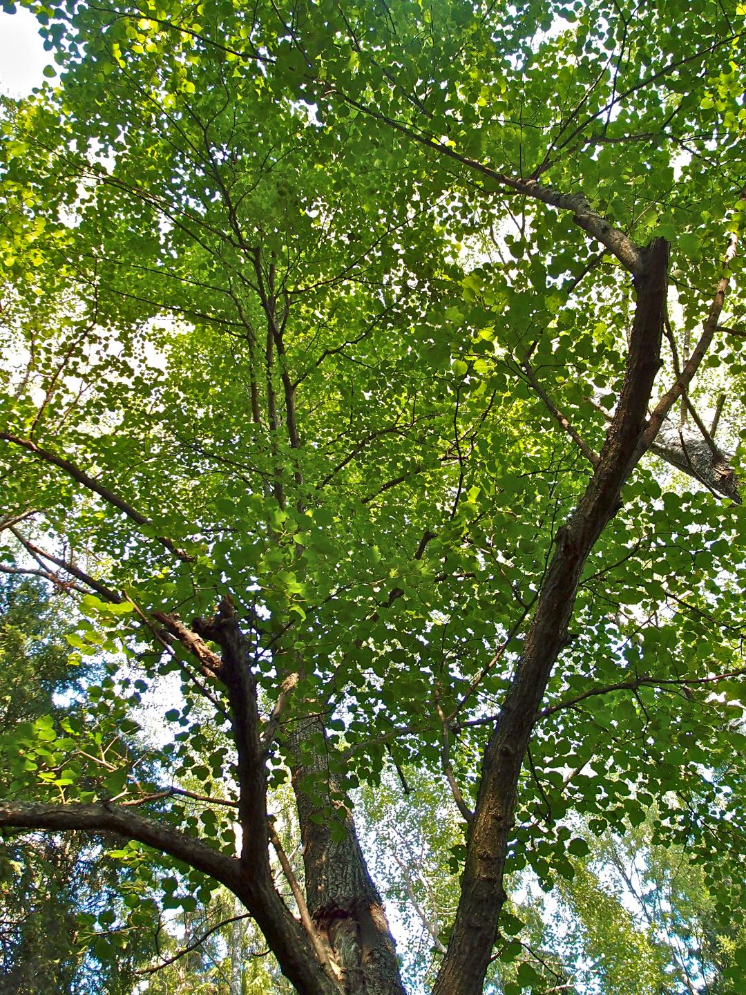 Suuri metsälehmus kohottaa latvansa korkealle.